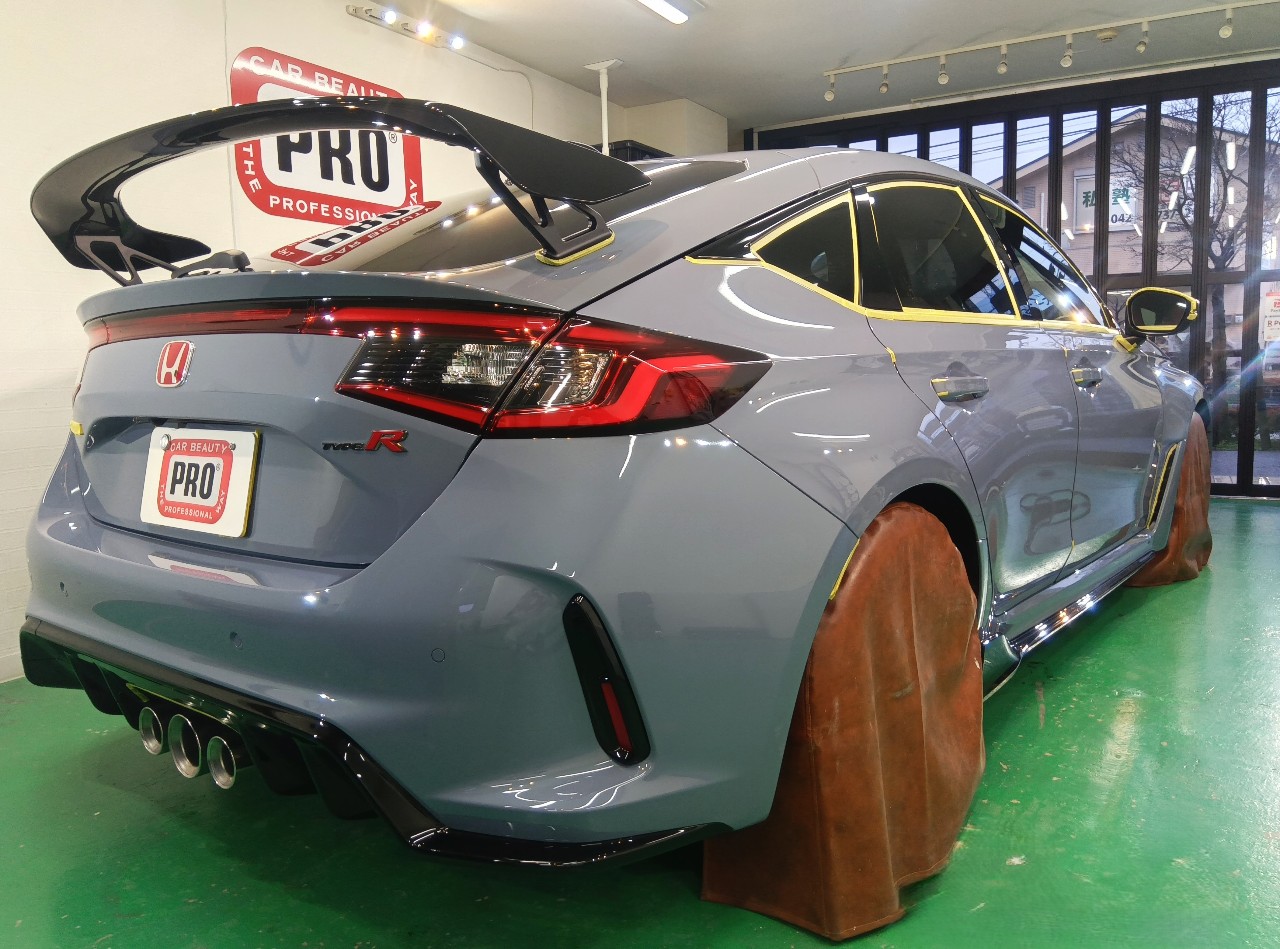 - <div>シビック タイプRのお客様</div><div><br></div><div>ボディコーティングにて、超撥水性3Mセラミックコーティングを塗布。</div><div>新車でのご依頼です。</div><div>新車の割に塗装表面が荒れていた為ポリッシングにて塗装面を平滑化してからコーティングを塗布。</div><div>セラミックならではのエッジの効いたキラキラ感と手触り感が格段に向上しています。 </div><div>戦闘機を連想するようなソニックグレーがより一層映えました。。</div><div><div></div><br></div><div><div>セラミックコーティングは防汚性が高く雨染みやキズ防止にも効果が高い為、通常のガラスコーティングに比べても優れているのが特徴です。</div><div>見た目もしかり、他車と差を付けるならセラミックコーティングをお薦めします。</div></div><div><br></div><div><div>コーテイングすることで洗車が楽になりお手入れしやすくなります。</div><div>塗装のの保護もするのでお薦めです。</div><br></div><div>ご依頼ありがとうございました。</div>